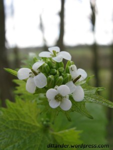 Unsurprisingly this common hedgerow plant tastes like both garlic and mustard. I think it is delicious, but some people are not keen on the slightly bitter aftertaste. Like other mustardy plants it is a member of the cabbage family; the clue is in the broccoli like buds and four petalled flowers. The leaves are cordate (heart-shaped) and smell of mustard when crushed, and the stems often have a purplish tinge. It is a biennial meaning it only flowers in the second year of growth. This generally means a longer picking season as growth is staggered depending on whether it is first or second year.