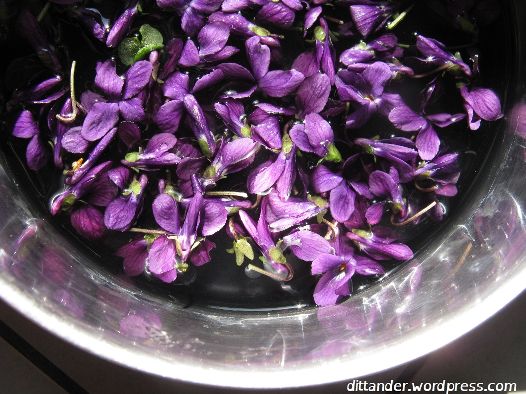 And there you have it. Or do you? You may be disappointed that although you have captured the scent and smell of the violets the wonderful colour remains elusive (this recipe normally produces a light purplish blue liquid)